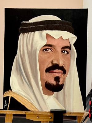 عمل للملك سلمان بالوان اكريليك استغرق العمل ما يقارب ١٠٠ ساعة مقاس اللوحة ٥٠سم في ٥٠سم