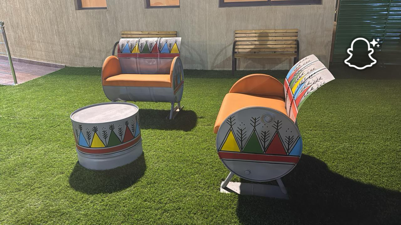 مشروع اعاده تدوير براميل الزيت مع اضافه لمسه من القط الجنوبي لاضافه جماليه للمشروع مع اضافه حمايه شفافه لها